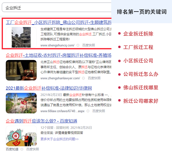 5个关键词排名首页