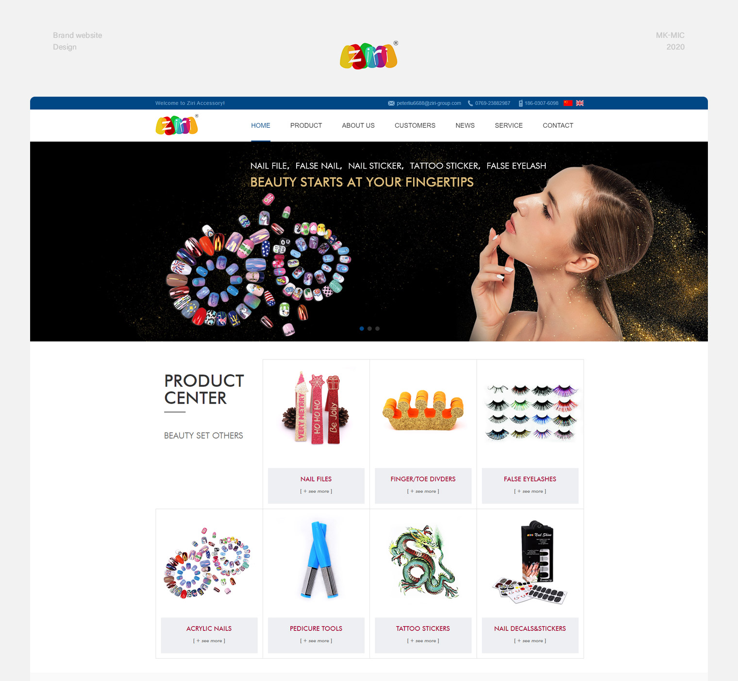 指悦饰品是做美容美甲工具的,产品95%的份额出口至欧洲(英国,德国,西班牙,意大利与法国)美国以及日本,网站用做谷歌推广,所以优化功能比较重视;对产品、公司实力、规模的展示需要达到国际范的审美标准。我们针对客户的产品图片和厂房图片进行了精修,保证整个网站看上去高端、大气、国际化,对产品的详情页也做了相对应的定制化设计,保障整个网站的逻辑性、美观性。