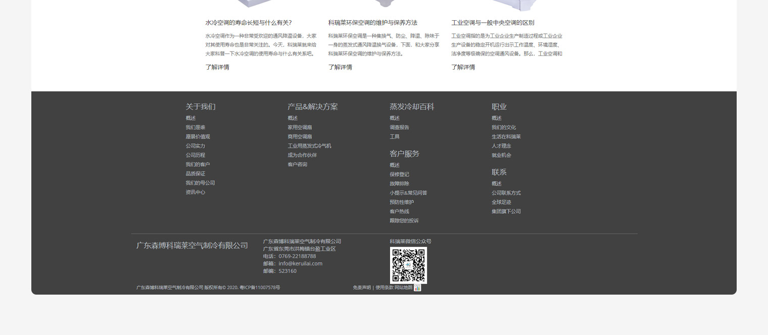 科瑞莱中英双语网站建设,网站采用极简式的风格设计,结合了国外网站的设计风格,让网站看起来别树一帜。客户主要做冷气机研发,网站在栏目的排布以及页面布局清晰的展示出了客户的强大实力背景以及专业的产品领域。通过解决方案与产品的结合带动了用户更加深入的了解客户的产品。