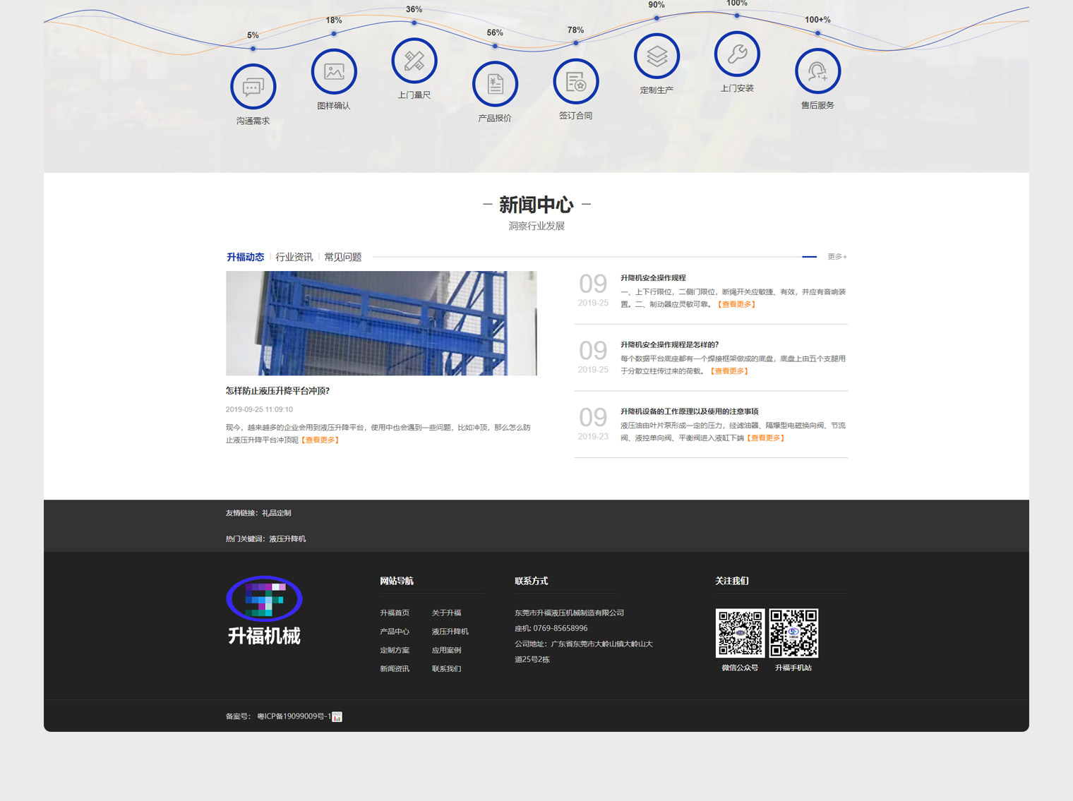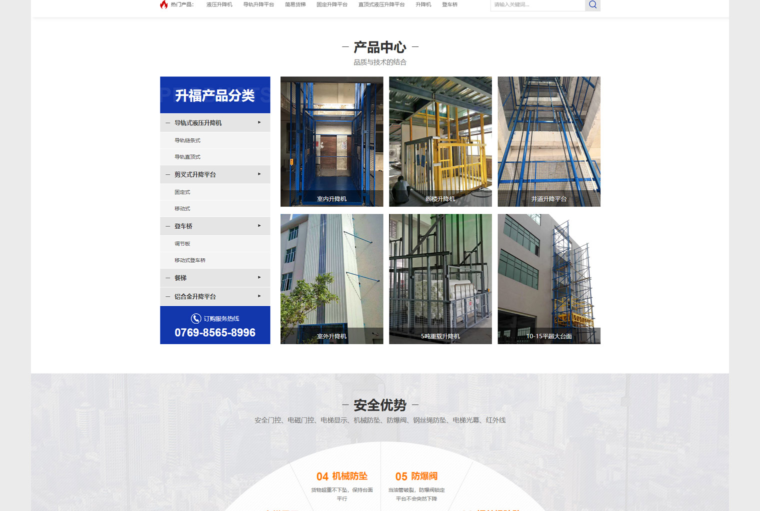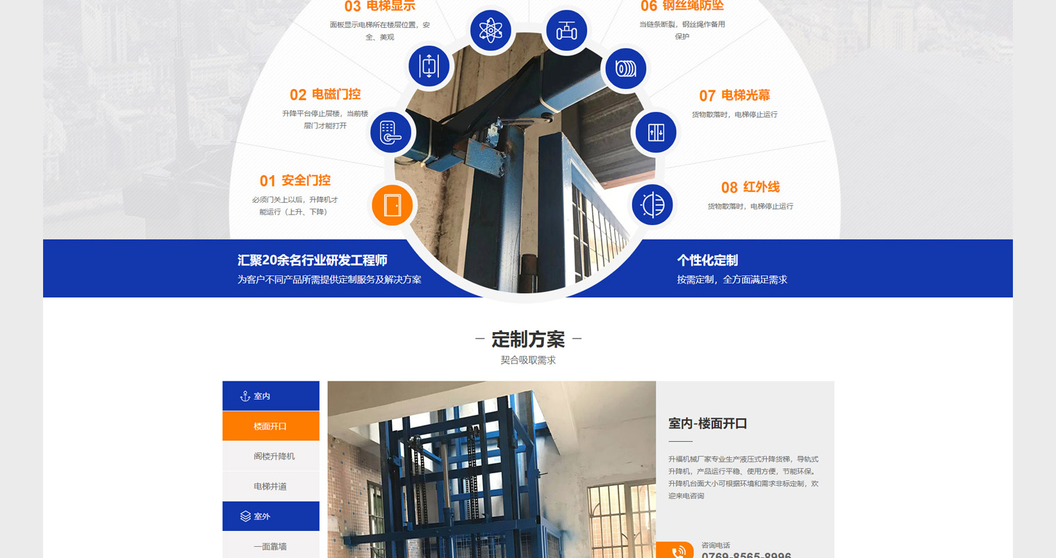 升福压液主营以压液升降系为主,网站建设结合公司定位及用户需求进行内容布局,压液升降可以应用到多个领域;如:工厂、舞台、餐梯等,但通过分析升福在工业这一块具有明显优势,网站建设核心以工厂为主,升降机本身用户对于安全性比较重视,整站在安全这一块做了重点说明,大量工程案例展示空出了行业经验。