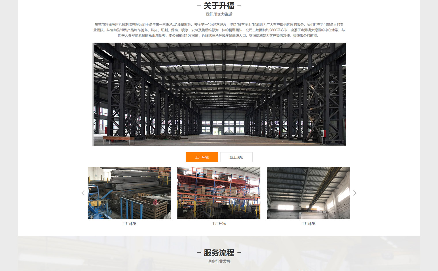 东莞市升福液压机械制造有限公司十多年来一直秉承以"质量取胜、安全第一"为经营理念,坚持"顾客至上"的原则为广大客户提供优质的服务。我们拥有近100多人的专业团队,从售前咨询到产品制作抛丸、铣床、切割、焊接、喷涂、安装及售后维修为一体的精湛团队,公司占地面积约5800平方米,座落于粤港澳大湾区的中心地带,与四季入春翠绿昂扬的松山湖毗邻,本公司前接107国道,近临珠三角环线多条高速入口,交通便利是为客户提供方便、快捷服务的前提。