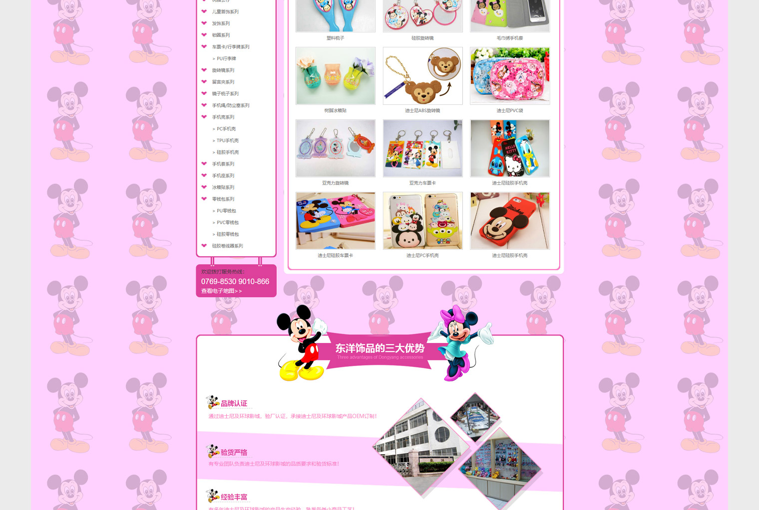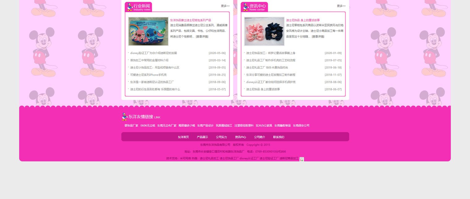 东洋饰品网站建设以推广网站,网站建设阶段通过公司定位及客户需求进内容布局,东洋饰品是迪士尼认证工厂,主要订单以迪士尼产品为主,网站设计UI阶段结合了迪士尼的元素使整个页面使萌。