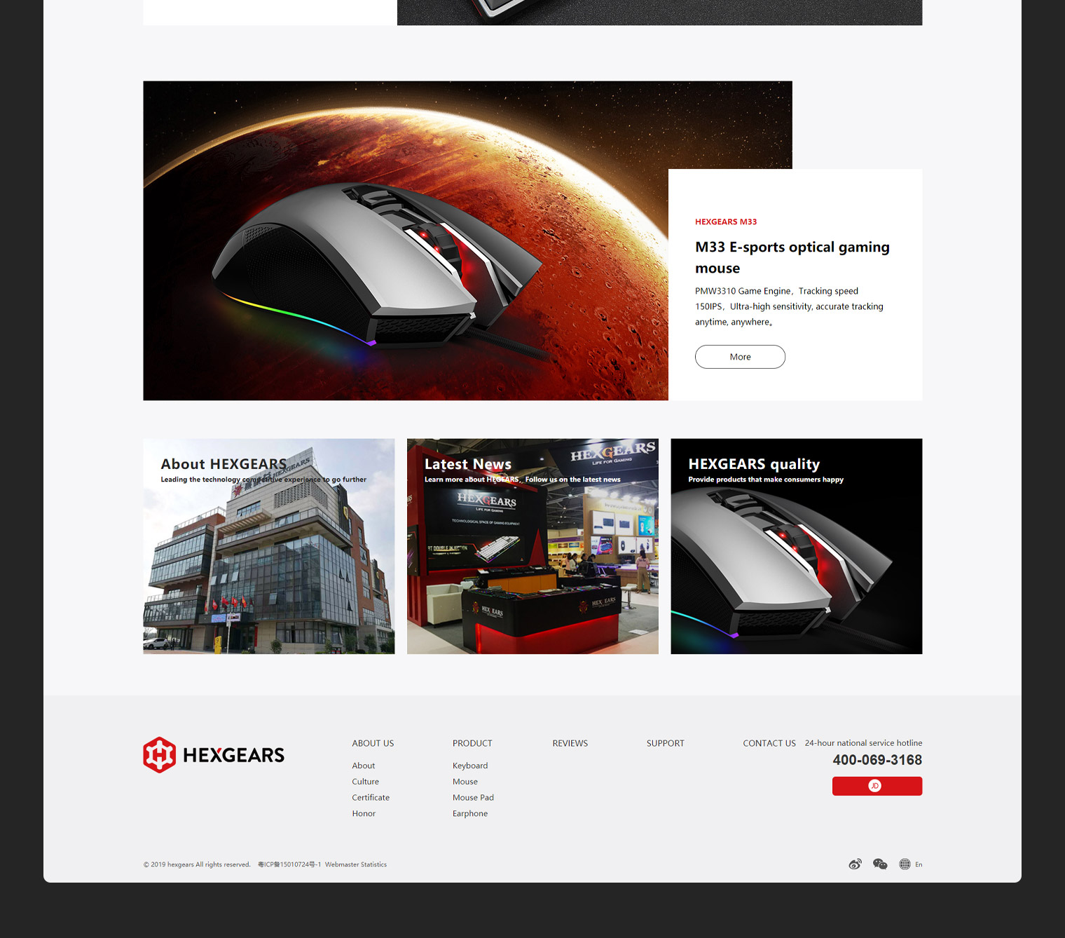 黑峡谷(HEXGEARS)-电竞电子产品研发、生产、销售为主,通过网站建设提升公司品牌影响力及产品展示,结合行业特性(科技感、游戏特色、品牌理念)及客户关注点(性能、炫酷)对产品进行了独立设计,每款产品结合定位进行独立营销单页设计,以突出产品的性能及科技感,采用扁平化设计风格融入产品设计的理念,使整个页面设计独具特色。