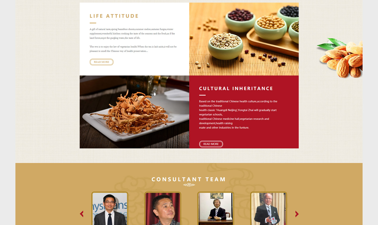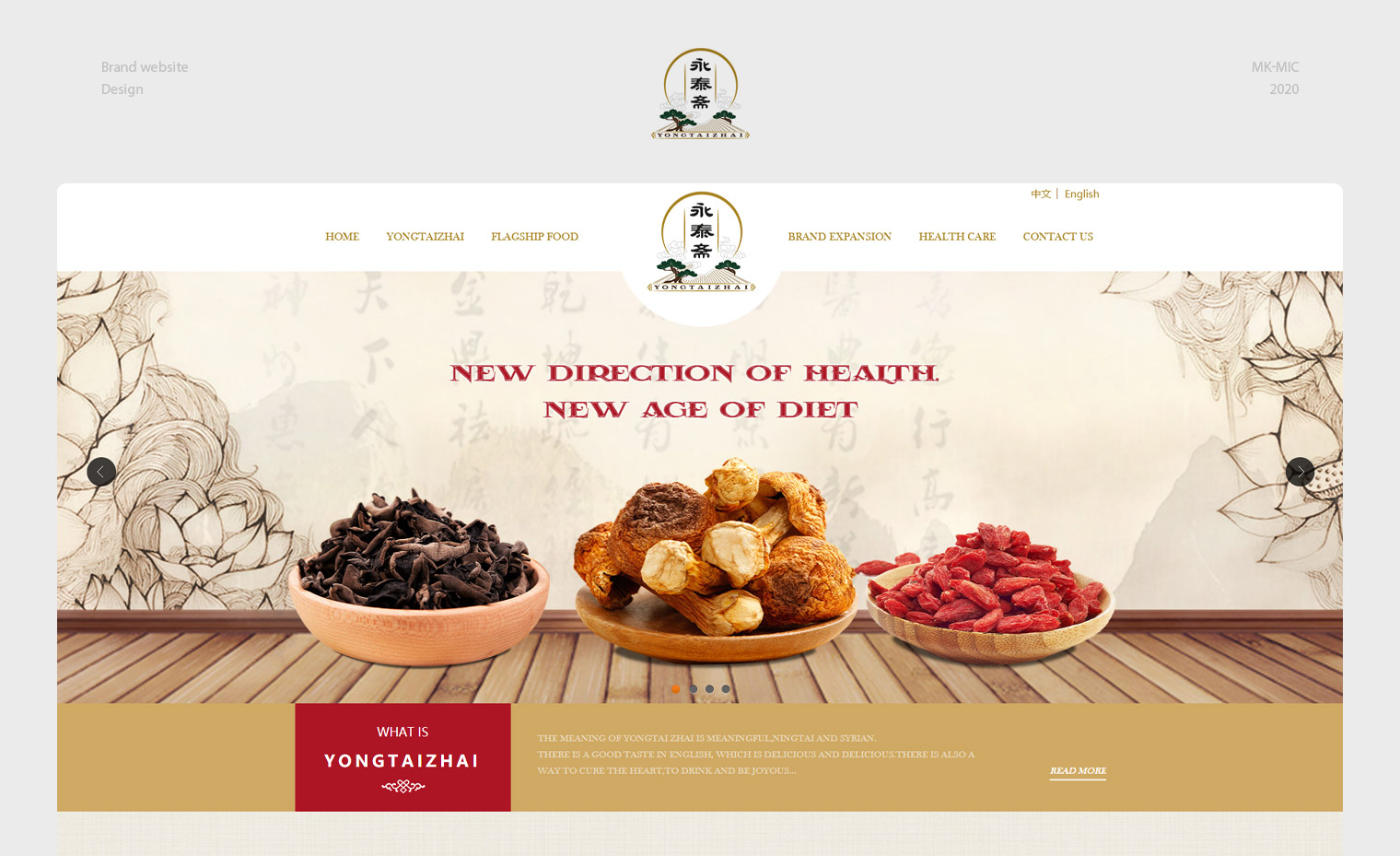 永泰斋英国素食餐饮连锁品牌、通过网站传递企业文化及饮食理念,网站设计结合永泰斋整理VI体系进行色调搭配,网站细节空白区域融合了食材的元系,背景使用素雅布文,使整个网站突出了文化气息"佛系",从整个网站中可以看出“佛系”的风格特色,VI风格及logo风格在整个网站中体现突出。